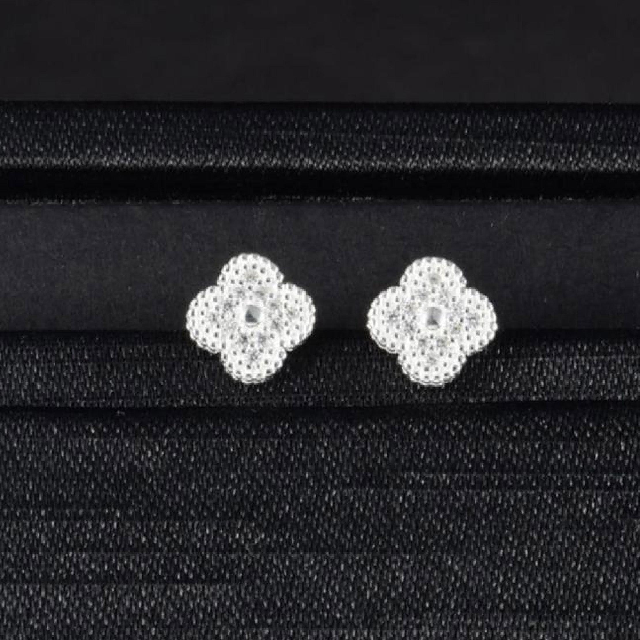 Delicate clover-shaped stud earrings crafted in genuine Italian 925 sterling silver, fully set with shimmering stones. A refined and timeless design that adds a subtle touch of elegance and luck to any look.